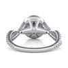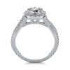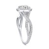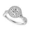 This enticing halo engagement ring with twist design and accent stones is truly remarkable and a best seller. This ring has a 1.00 ct total diamond weight. We have a 100% natural diamond guarantee and the diamonds on this ring are certified at D, VVS1. The center stone shape is “Round” and the diamond has 0.65 ct. The side stones shape are Round and have 0.35 ct total diamond weight. This ring is hand crafted in the USA in 14k White Gold. For more information, call us today. - Reviews